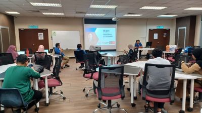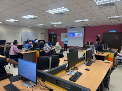 This lab is equipped with high-performance desktop computers, projectors, and software tools tailored for immersive technology training, programming, and game development.