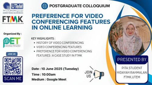 Join us for an engaging postgraduate colloquium organized by the Pervasive Computing & Educational Technology (PET) research group, in collaboration with FTMK, UTeM.
